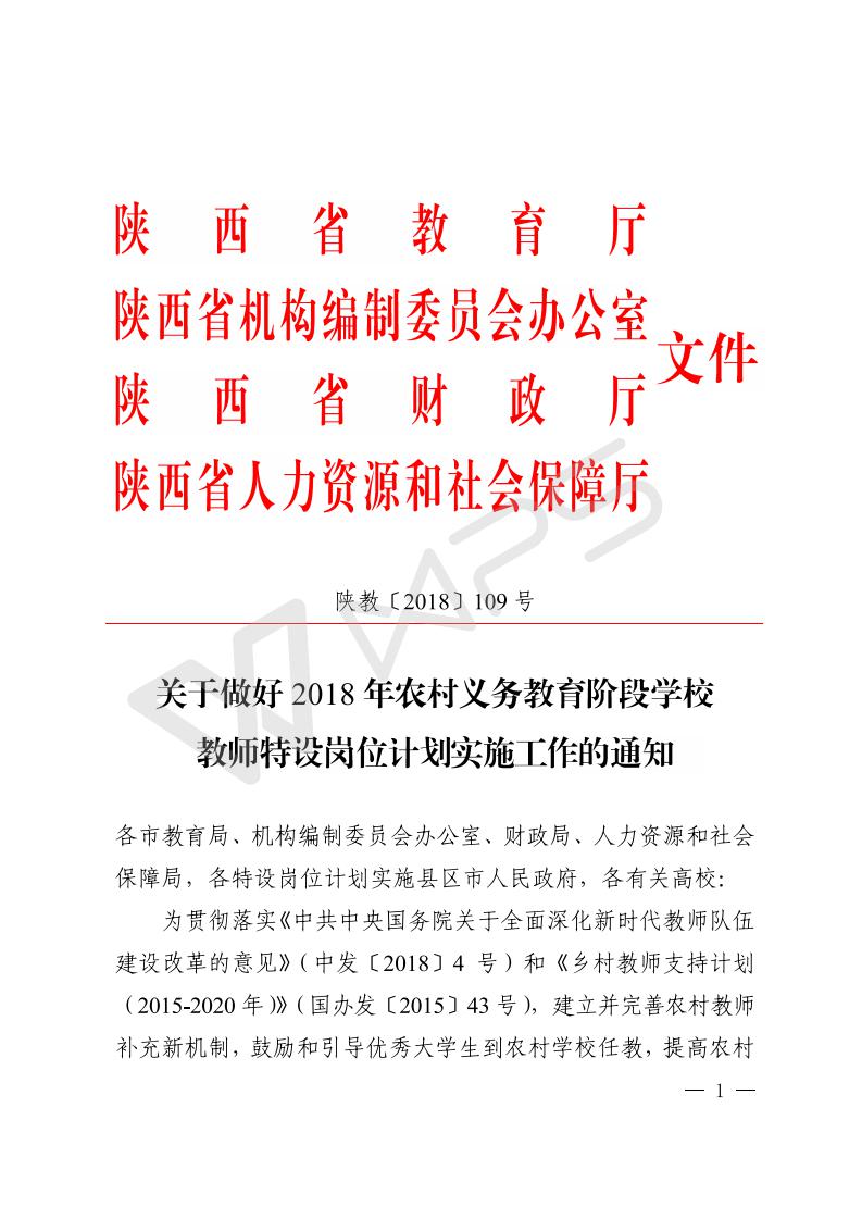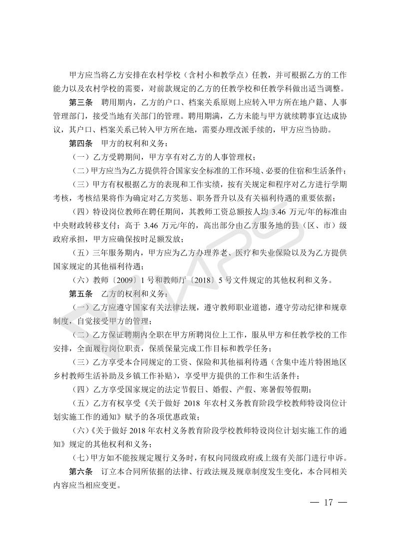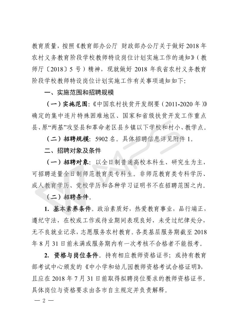 关于做好2018年农村义务教育阶段学校教师特设岗位计划实施工作的通知