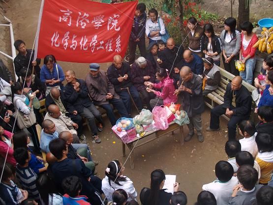 在九月九日重阳节来临之际,商洛学院化学与化学工程在系党支书记李家兴老师的带领下,一行九十多人前往静泉山看望孤寡老人,并给他们送去了节日的问候与祝福。