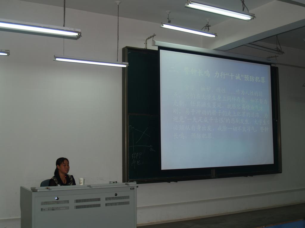 新学期为加强我院学生自我保护意识,提高警惕,预防和防范犯罪侵害,我系党总支积极组织各班班主任、辅导员相继召开法制教育主题班会,并在9月6日晚邀请院宣传部刘麦霞老师作了法治教宣传专题报告。