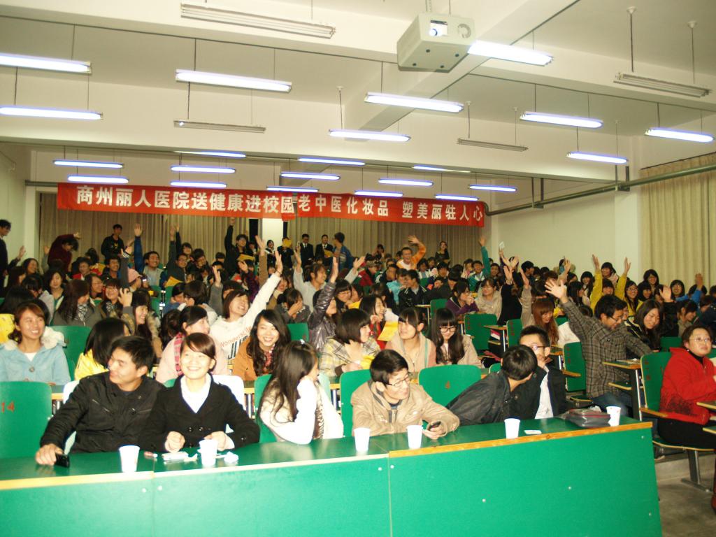 在主持人尚凯介绍嘉宾之后,商州丽人医院妇科主任刘梅医生,开始了对女性健康知识进行全面的讲解。首先针对我校女生较多这一特点从青春期讲起,随着年龄的增长逐渐拓展知识,刘医生的讲解,让在座的女性朋友收获了不少,会场掌声不断,气氛异常活跃。中场的休息时间特设的有奖抢答环节,使整个会场气氛达到了高潮。随后,由老中医化妆品商洛分店总经理吴娟女士致词,吴女士表示不仅对本次活动大力支持,而且还将支持我系后续的所有活动。