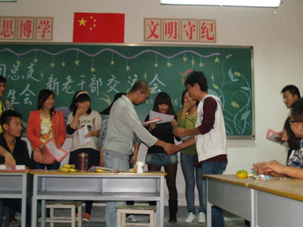 2013年10月10日晚,化学与化学工程系团总支系分会在团总支书记武老师的领导下,组织举办了我系11.12级团总支系分会新老干部交流会,与会的有团总支书记武老师、副书记董小刚、系分会主席王哲以我系团总支系分会11.12级的全体干部成员。