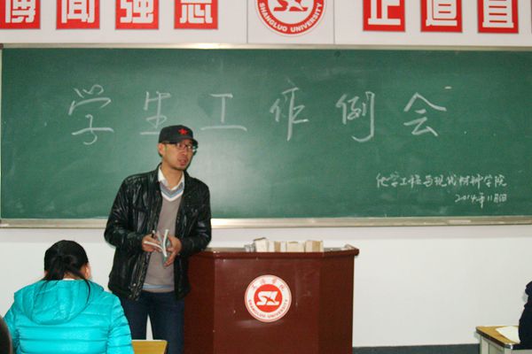 2014年11月6日晚,化学工程与现代材料学院学生工作例会在五号楼307教室召开,参加此次会议的有党总支刘全民书记、武永耿老师,12、13、14级各班班长、团支书,会议由叶春老师主持。