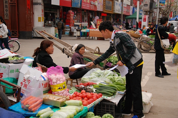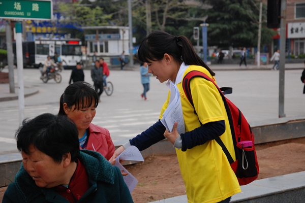 下午两点,我院科普小分队一行11人与丹凤县团委志愿者一起来到丹凤县人流量比较大的中心广场,以现场咨询和发传单形式向当地居民做日常生活中的科学知识普及和宣传,内容包括雾霾篇、节水篇、低碳篇等。活动期间,大家都积极参与其中,纷纷阅读了解相关内容,志愿者们也都热情积极地向居民详细讲解。此次活动倡导更多人发挥自己所学专业的优势,用科学知识服务社区、服务群众,帮助社区居民了解日常生活中的低碳环保问题,在群众心中树立环保观念,真正做到让科技走进社区。