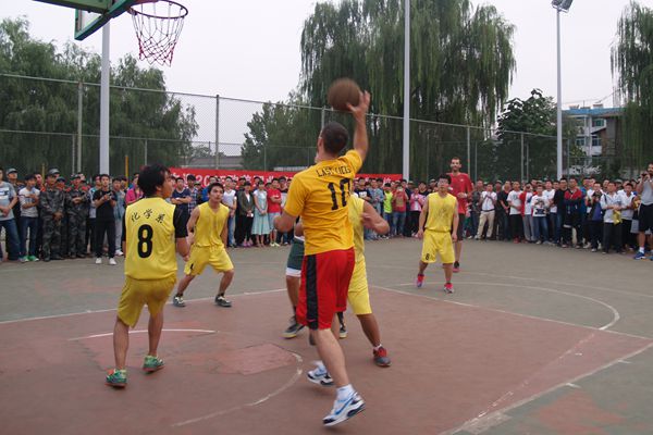 9月19日下午五点半,欧美职业篮球对抗队应邀与我院篮球队友谊赛在操场进行。