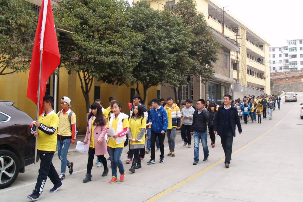 活动开始之前,王老师向同学们介绍了本次活动的相关内容。随后,各部准备就绪,从5号教学楼前出发去往中心广场。