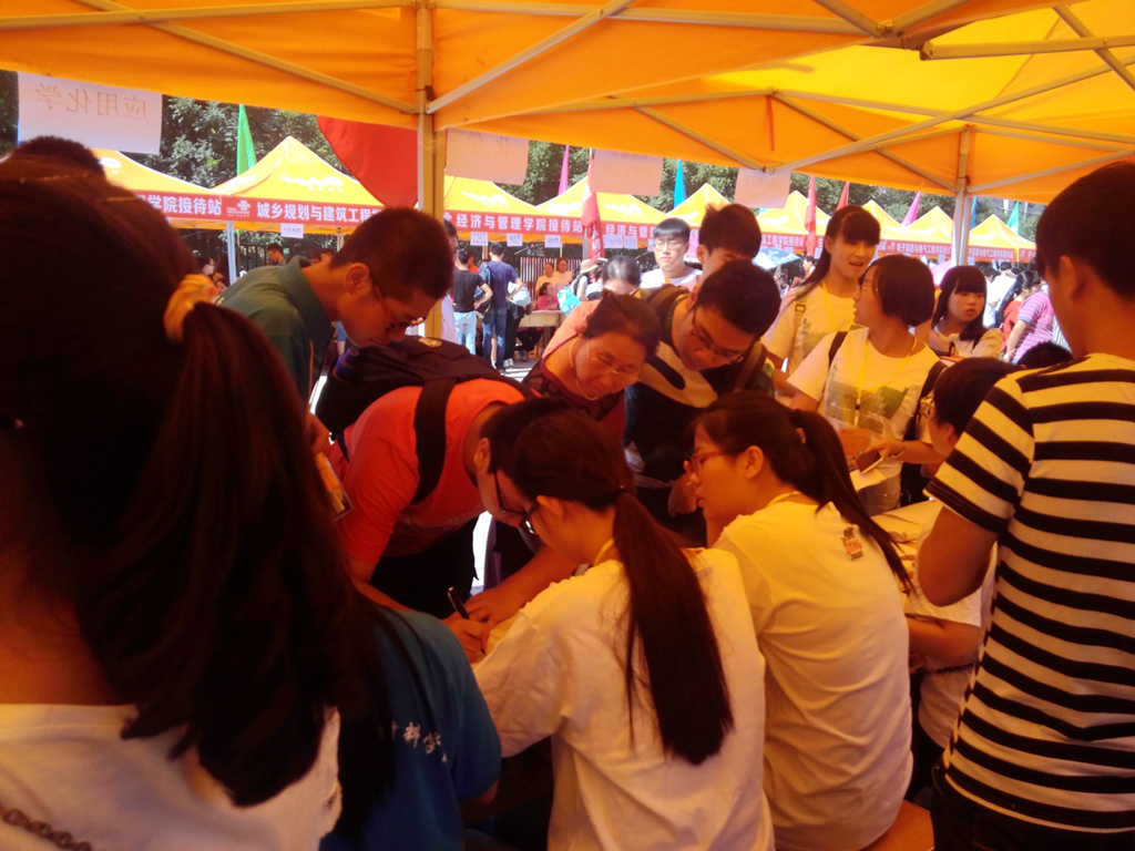 九月二号下午,我院展开了2016级新生的迎接工作。参加本次迎新活动的志愿者由院学生会成员和15级各班的同学组成。 虽烈日炎炎,但难抵新生的求学渴望。默默奉献,方显志愿者的无私与真诚。