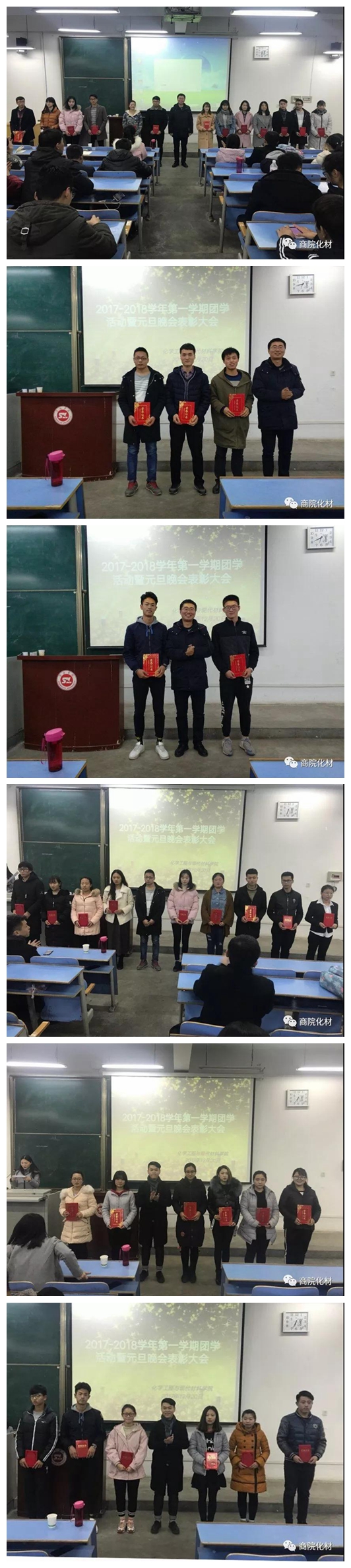 随着“不忘初心,逐梦化材”学生风采展示晚会暨2018年元旦晚会的圆满落幕,我院于12月20日下午六点十分准时在一号楼多媒体一召开“化学工程与现代材料学院2017-2018学年第一学期团学活动暨元旦晚会表彰大会”。出席本次会议的人员有团总支书记王淦卿、团总支副书记张希、解腾飞、学生会主席梁少华、各部门部长、16、17级全体团支书、组织委员、宣传委员及各项活动的相关获奖人员。