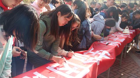启动仪式的最后由邓惋心同学带领全体成员宣誓。真挚的言语中带着对未来生活的憧憬,激昂的语调里渗透着学子的信心。本次启动仪式由大家在横幅上签字,参与此次启动仪式的学生全体合影留念。