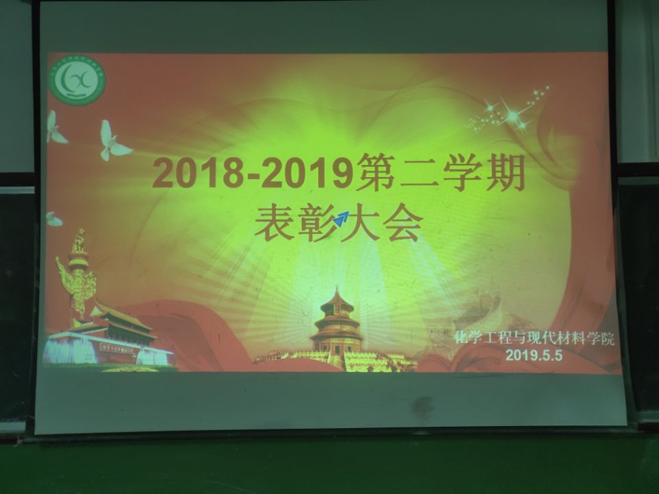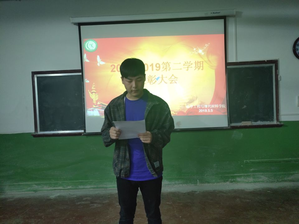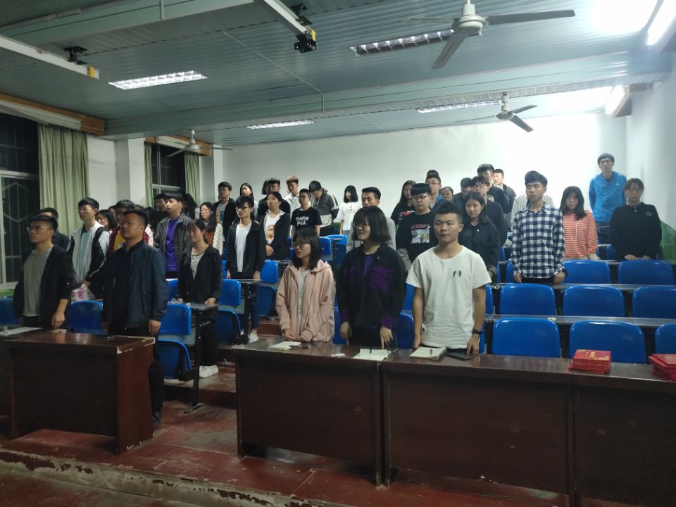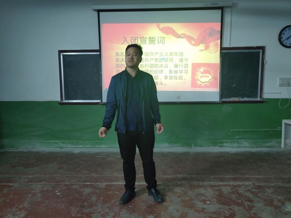 我院2018-2019年度团委五四表彰大会及入团仪式于5月5日19时30分在五号楼108教室举行,参加本次会议的人员有团总支书记郝东,学生会成员,新入团团员,以及运动会优秀运动员。
