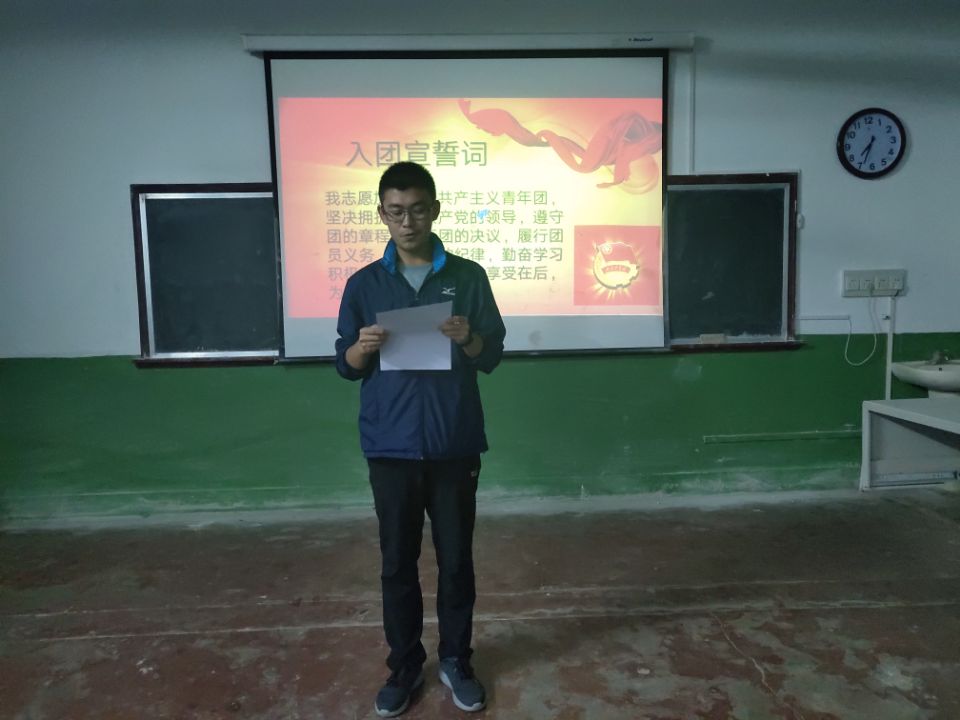 接着由主持人宣布周旭阳,万甜甜,魏琪等十三个人入团,并带领他们进行入团宣誓,一起学习入团规章。新团员谢宇航和老团员顾杭杭就自己的入团感想以及未来努力方向分别发表讲话。
