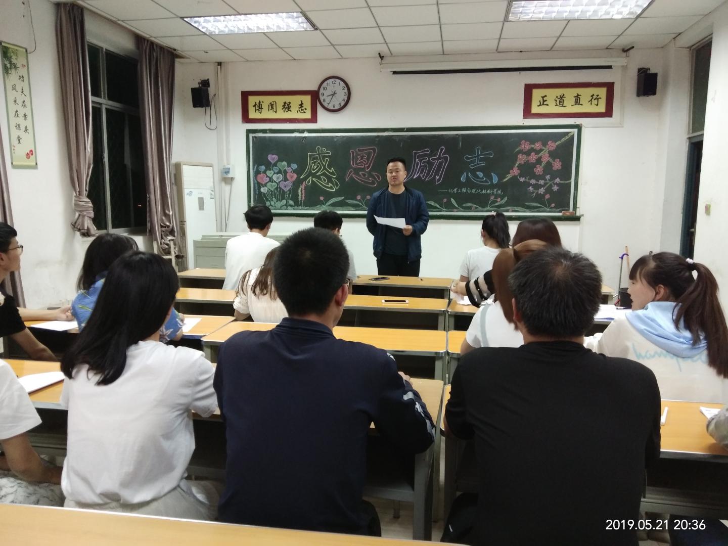我们是祖国的花朵,无时无刻都感受着祖国母亲的温暖,我院学子为了表达自己的感恩之情,磨砺自身的意志,弘扬社会正能量,我院举办了感恩·励志演讲比赛。比赛于2019年5月21日在五号楼409教室举行。出席此次比赛的有团总支书记郝东老师、学生会主席赵飞宇和各部门部长。
