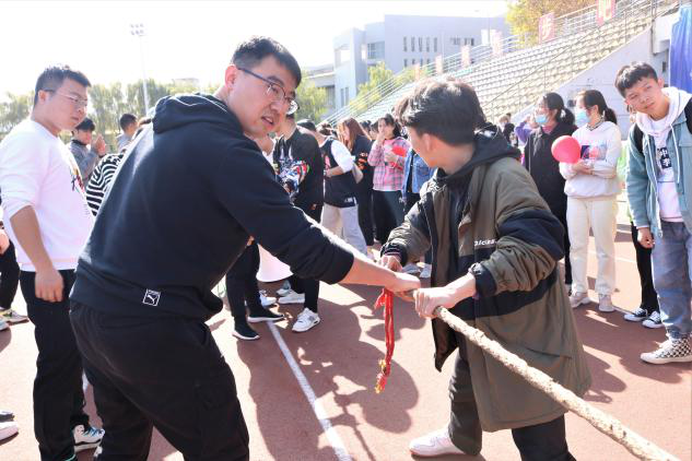 在最后的团体项目拔河比赛中, 各专业代表队都呈现出最强的比赛阵容。随着一声哨响 ,所有参赛队员用尽全力, 周围助威的呐喊声震耳欲聋,双方在经过数十秒的用力拉扯, 伴着再一声哨声响起,赛场上响起了一片胜利的欢呼声。