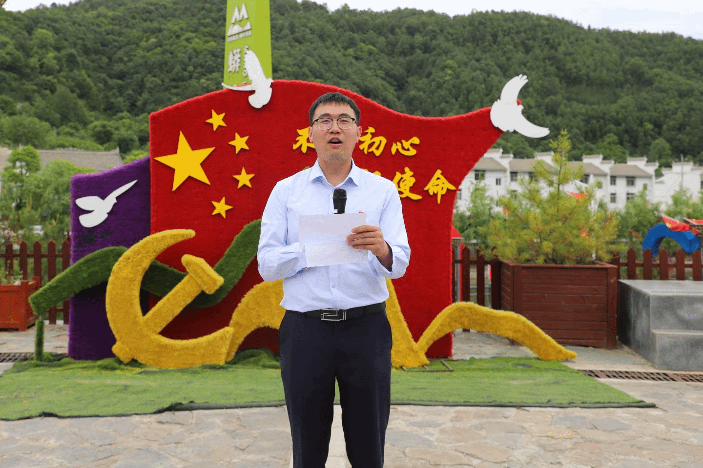 随后化材学院团总支书记房禹发表了讲话,他说来到北宽坪红色教育基地,我们应继承和发扬革命老区的优良传统,学习历史、传承先烈的丰功伟绩。
