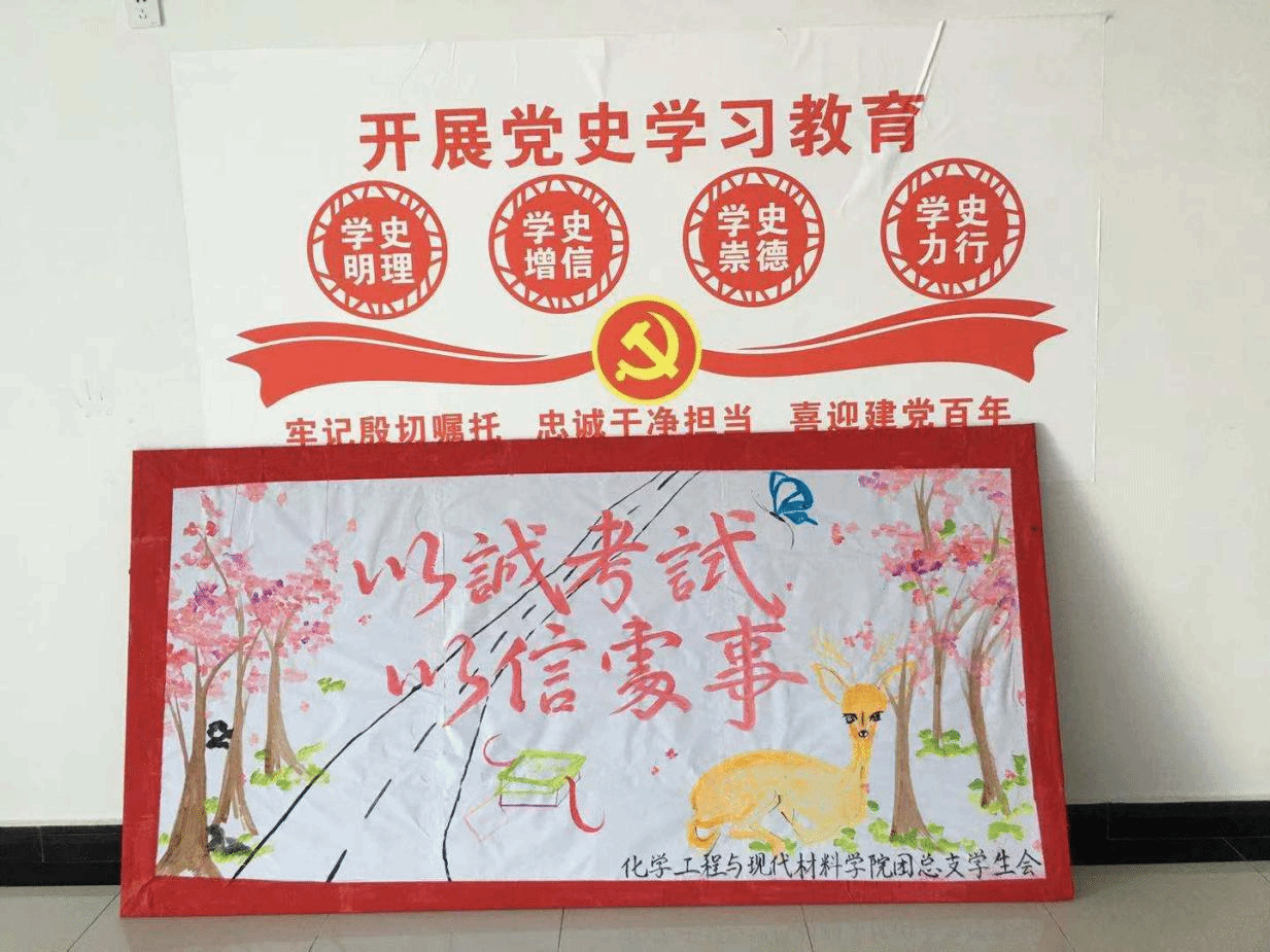 我院学生会专门制作了关于诚信做人、诚信考试的主题展板,以字提点、以句警醒,力使广大学子把“诚信”二字落实到学习、生活的方方面面,让诚信观念深入学生心中,营造了良好的舆论氛围。