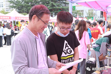 迎新期间,院党总支书记李军富教授、院长周春生教授前来报到处对报道情况进行了解,学工办李馥利老师耐心的为新生解答疑惑并对工作人员进行慰问。