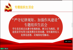 首先,为加强作风建设,学习贯彻了习近平总书记关于加强纪律教育的重要论述,党支部书记王鹏举老师带领党员集体学习了《中国共产党纪律处分条例》、《党委(党组)落实全面从严治党主体责任规定》《中共中央办公厅关于进一步激励广大干部新时代新担当新作为的意见》以及中央、省委和学校党委关于加强作风建设的各项部署等以此来引导全体党员树立优良作风,坚定理想信念,提高自律意识,勇于承担责任。