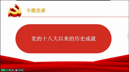 最后,支部书记带领全体党员集中学习了“党十八大以来的历史性成就”主题党课。王鹏举老师带领全体党员集中回顾了党的十八大以来坚持党的全面领导、全面从严治党、经济建设、全面深化改革开放等十二项历史性成就,让全体党员对党和国家的破性进展和标志性成果有了更加全面的认识,更加坚定了党员们的理想信念。