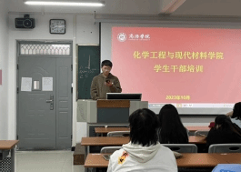 化材学院副书记·副院长曹宝月、化材学院学工办主任李馥利、化材学院团总支书记戴壹分别从学生干部的情商培养、学生干部的组织管理能力培养和如何做好一名合格的学生干部开展专题讲座。
