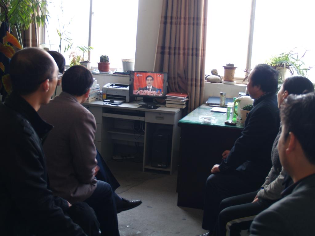 我系党政领导及全体辅导员在系办公室组织观看党的十八大开幕式
