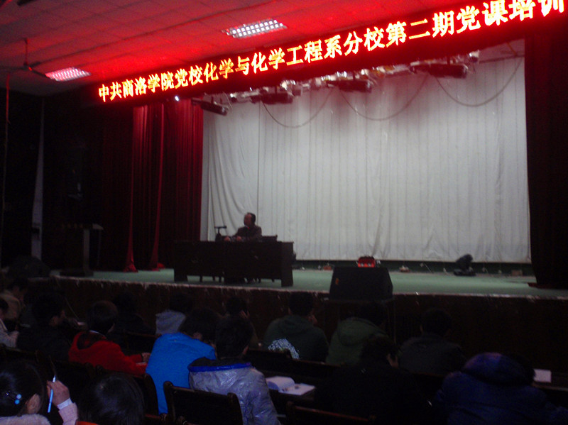 春风和畅,草长莺飞。2012年3月12日,在这个美好的日子里,商洛学院党校化学与化学工程系分校第二期学员培训在大学生活动中心正式开课了。本期党课共计30课时,分12次授课。共有151名学员参加党课学习。承担本次党课授课任务的领导和老师有学院纪委书记王思怀教授、化学与化学工程系党总支书记刘全民老师、院团委王宗运老师、系团总支书记武永耿老师。授课内容包括党的性质、党的指导思想、党的纲领、组织原则、共产党员条件及权利等。