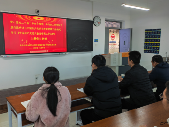为了响应校院两级党委的要求,11月27日尾矿综合利用团队党支部开展党的二十届三中全会精神学习研讨会。全体党员参加了此次活动,会议由支部组织委员李峰主持。