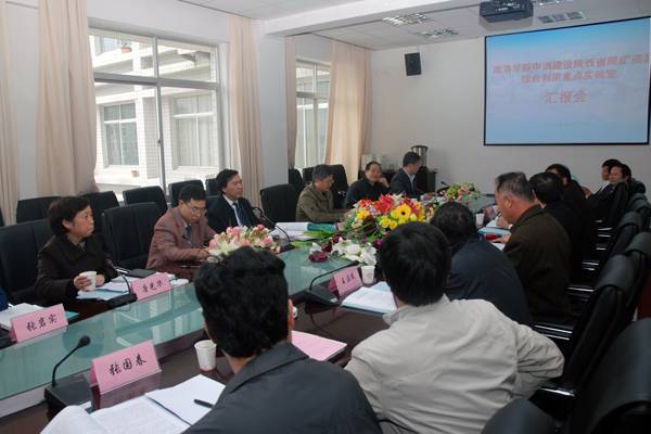 院党委副书记、院长张景书,副院长陈永庄,商洛市科技局局长刘毅生,市尾矿资源综合利用中心副主任王颖,学院科研处、教务处及实验室相关负责人参加了汇报会。张景书在致辞中指出,申报陕西省尾矿资源综合利用重点实验室,对我院进一步提高科研质量提高人才培养水平,服务区域经济建设具有重要作用。我院将以本次审核为契机,深入总结和分析我院教学和科研工作取得的成绩和存在的差距,进一步理顺办学思路,更新教育观念,深化教学改革,加强科研工作,提高教育质量,为区域经济社会发展培养更多的应用型人才作出新的更大的贡献。