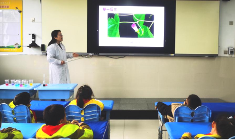 为深入贯彻习近平总书记关于科技创新和科学普及的重要论述,全面贯彻落实《全民科学素质行动计划纲要》,激发青少年对科学的梦想与追求,12月10日,化材学院王丹博士和李凯斌副教受邀走进商州区第六小学开展《姹紫嫣红——紫甘蓝变色记》科普展演活动,二(4)班全体师生参与活动。