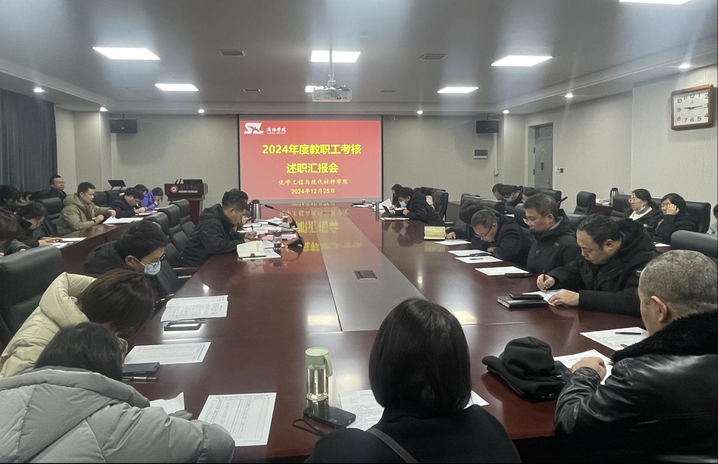 为全面总结2024年学院工作,考核学院教职工在过去一年里的工作实绩,充分调动全体教职工工作主动性、积极性和创造性,营造争优创先的良好氛围,12月25日,化材学院在丹江校区4号楼218会议室召开2024年工作总结暨教职工述职大会。学院领导班子成员、全体教师79人参加了会议,会议由学院院长曹宝月主持。