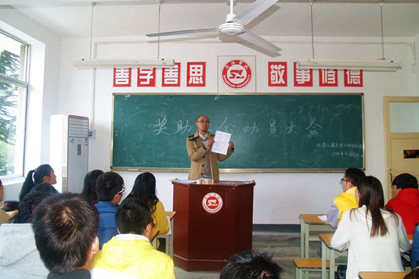 奖助学金的分发体现了党和政府对普通高校家庭经济困难学生的关怀。为了更好贯彻学生处的文件精神,切实做好奖助学金的评定工作,我院于10月16日在309教室召开奖助学金动员大会。此次动员大会由武永耿老师主持、参会人员有党总支刘书记、高霞老师、叶春老师,柴文耕老师以及大一至大四各班班长、团支书和德育委员。