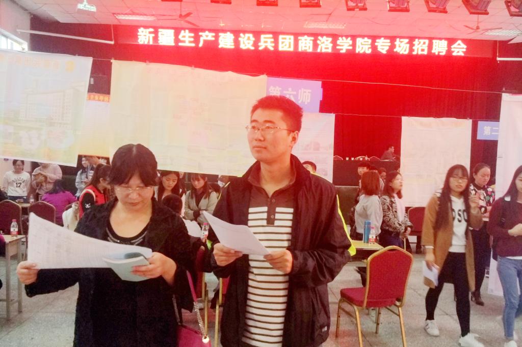 新疆生产建设兵团领导阎志刚说到:之前商洛学院参加新疆生产建设兵团的学生总计人数达到600多,他们有着吃苦耐劳奉献精神,现在都可以独当一面,有着不错的成绩。希望我们在校大学生能够正确的择业,可以先就业再择业。新疆生产建设兵团就是个不错的选择,无论是从政策还是待遇都是很好的。