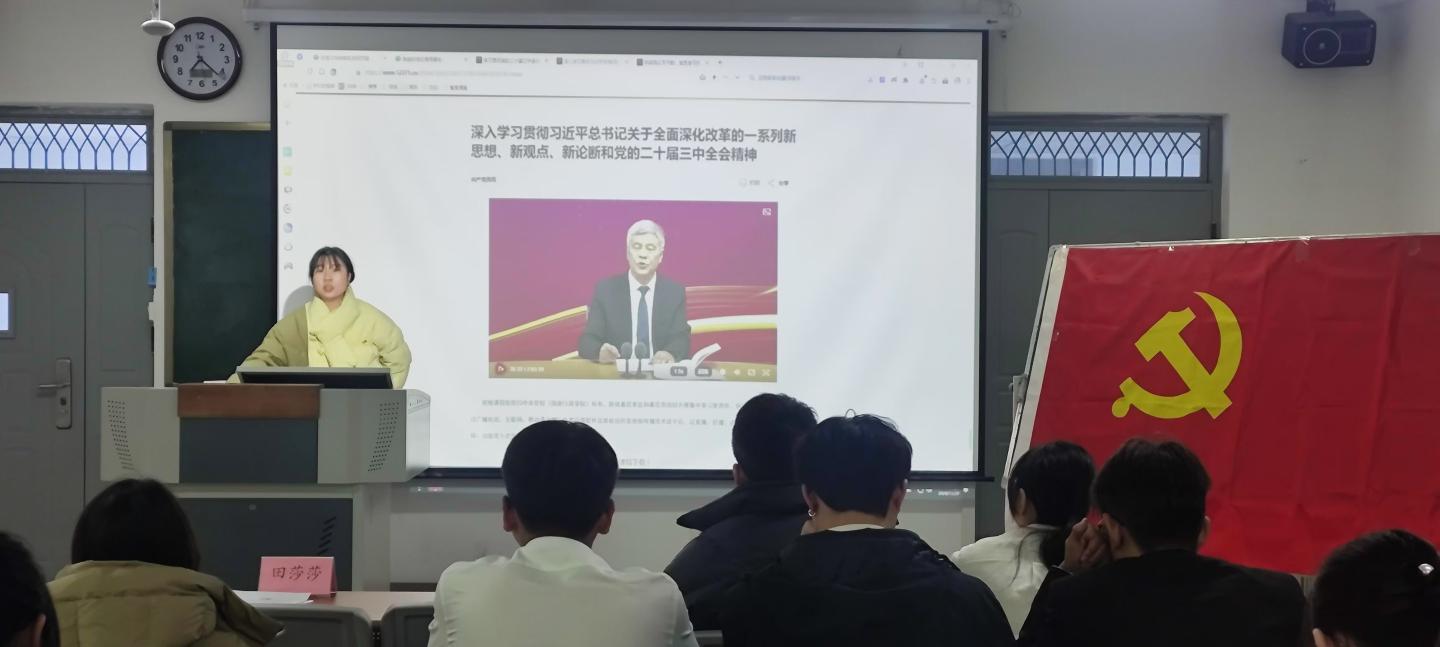 学院各党支部于11月27日下午召开主题党日,组织开展专题研讨、案例分析等活动,让全体党员在实践中深化对全会精神的理解和运用,利用线上学习平台,提供更加便捷、高效的学习资源和交流渠道,增强学习的吸引力和实效性。学生骨干党员以“如何结合学校中心任务和个人学习工作实际,贯彻落实党的二十届三中全会精神,在以中国式现代化全面推进强国建设、民族复兴中发挥党员先锋模范作用”为主题开展研讨。大家纷纷表示,要以党的二十大和二十届三中全会精神为指导,将理论学习与学术科研、社会实践紧密结合。发挥学生党支部战斗堡垒作用,通过凝聚共识和激发合力,把全会精神融入个人成长和国家发展目标,为中国式现代化建设和民族复兴贡献智慧和力量。