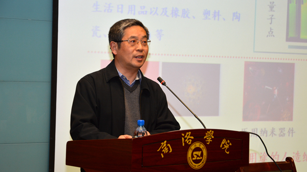 4月17日,国家杰出青年科学基金获得者、武汉大学珞珈特聘教授、博士生导师刘义应邀来到我校,为师生作了题为《纳米生物效应物理化学基础》的学术报告。化材学院和生物学院师生聆听了报告。报告会由副校长刘宝盈主持。