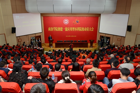10月23日,我校召开建校40周年暨升本10周年创建一流应用型本科院校动员大会。中国科学院院士赵鹏大教授、中国工程院院士张生勇教授,中共商洛市委书记陈俊,陕西省教育厅副厅长王紫贵,陕西省委高教工委委员、统战部部长李智军,中共商洛市委常委、副市长王华,马来西亚吉隆坡建设大学副校长克里斯汀、湖北文理学院校长丁世学、浙江万里学院执行校长应敏、陕西师范大学副校长党怀兴,西北大学党委副书记、副校长贾明德,陕西理工大学校长张社民、安康学院党委副书记胡鸿晓、商洛职业技术学院党委书记杨萌,陕西省社科联原党组书记周敏、陕西师范大学原副校长李钟善、西北大学原副校长刘舜康及全体校领导出席大会。