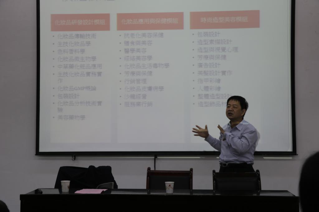 林维炤博士向化材学院教师介绍了嘉南药理大学专业建设经验, 嘉南药理大学与我校同为应用型本科院校,在办学特色、系部设置上有许多相同之处。希望两校能加强交流合作,通过互派教师和学生交流访学,将嘉南药理大学先进的办学与课堂教学理念引进我校,为我校带来新的活力与动力;通过良好的互动,使两校在人才培养等方面都有更大的进步。