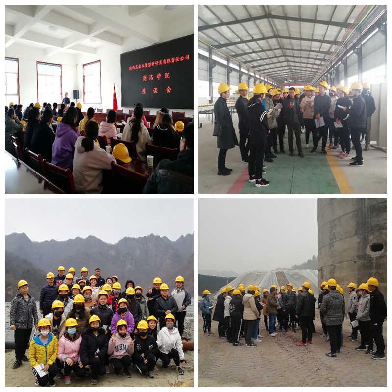 第二阶段实地观摩实践。2017级资源循环科学与工程专业全体学生在系主任刘璇的带领下先后赴九龙矿业有限公司、宏昌建材、丹凤县龙桥环保科技有限公司、陕西荔鼎木塑型材研发有限责任公司、商洛桑德水务有限公司等企业单位基地开展活动。教师徐珊、阎赞一同参加了实习活动。