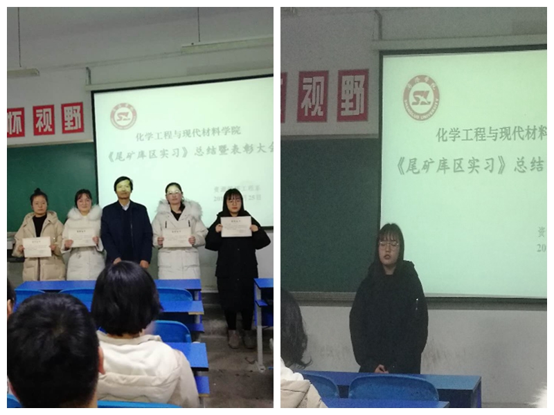 第三阶段总结表彰。实习结束后,资源循环系进行了尾矿库区实习总结暨表彰大会,同学们踊跃发言,讨论自己的实习心得。最后,院长周春生为优秀实习生颁发荣誉证书,鼓励循环学子在大学学习过程中取得更多更大的成绩。