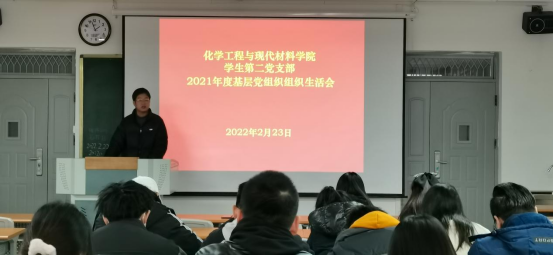 2022年2月23日,我院学生第二党支部在丹江校区4-211教室召开了2021年度组织生活会暨民主评议党员,本次会议由学生第二党支部书记王鹏举老师主持,全体党员参加了会议。
