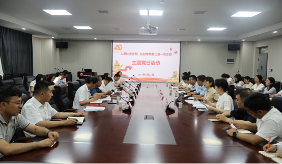 为增强党支部活力和创造力,发挥基层党组织的战斗堡垒作用,推进“党建+业务”深度融合,打破部门壁垒,加强协同合作,5月22日,人事处党支部与化材学院教工第一党支部联合开展了以“结对共建促教师专业成长”为主题的党日活动。学校党委委员、副校长王新军,人事处处长李斌,化材学院院长周春生、党委书记乔成芳出席活动。人事处党支部、化材学院教工第一党支部全体党员以及青年教师代表22位教师参加了本次活动。活动由化材学院教工第一党支部书记刘晓芬主持。